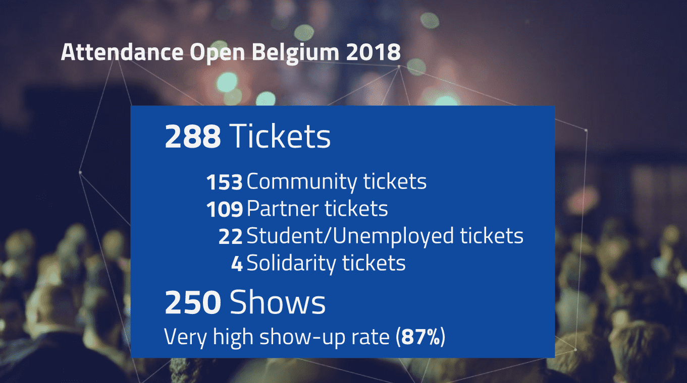 - Open Belgium has worked hard to make the conference affordable for everyone. Ticket prices were reduced by half from 2017. This year Solidarity Tickets were introduced; with purchase of this category ticket, one enables two less fortunate data enthusiasts to attend Open Belgium 2018.